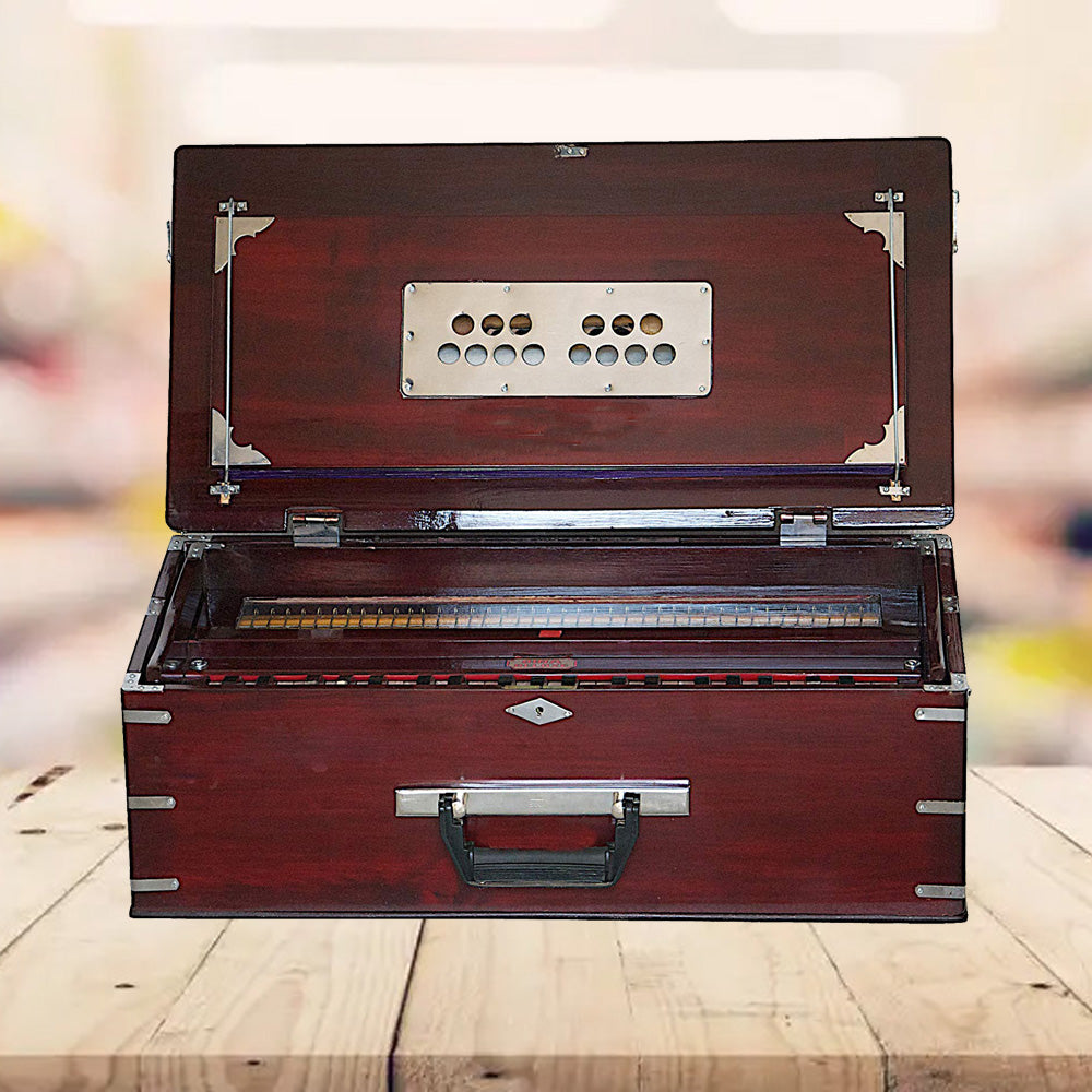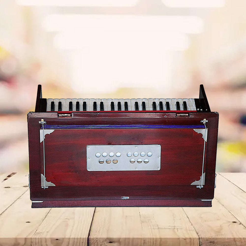 Binas Harmonium Traveler Hand Pumped/Portable/Folding 9 Stops- 5 Main & 4 Drones, 3½ Octaves, Teak Color, Coupler, Gig Bag, Bass-Male Reed - 440 Hz, Suitable for Yoga, Bhajan, Kirtan, etc