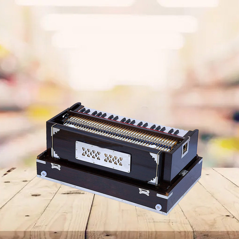 - Unleash your creativity with the Bina harmonium, a beautifully crafted instrument made from natural wood. Featuring 9 stops and two reeds, this traditional style