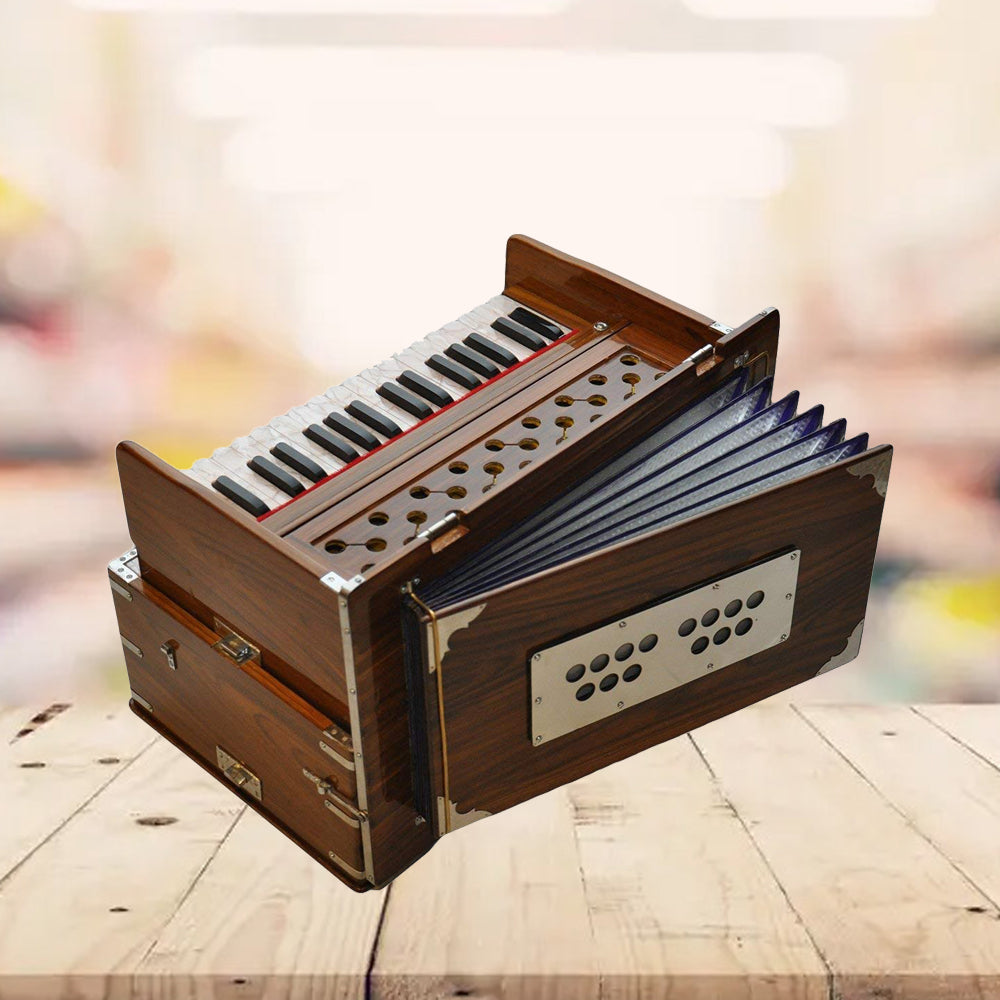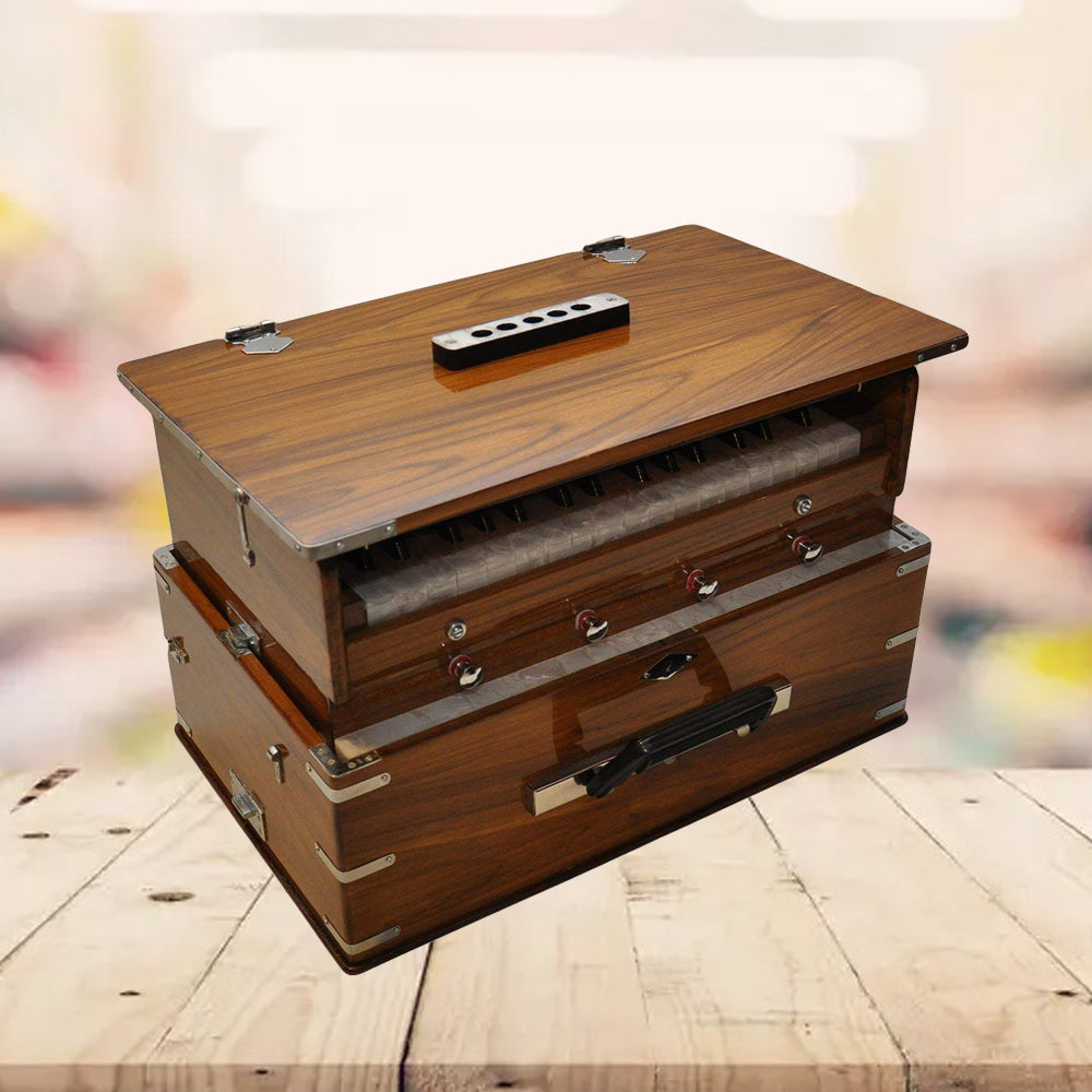 - Binas Harmonium Traveler/Portable/Folding 4 Stops- 5 Main & 4 Drones, 3½ Octaves, Teak Color, Coupler, Gig Bag, Bass-Male Reed - 440 Hz, Suitable for Yoga, Bhajan, Kirtan, etc