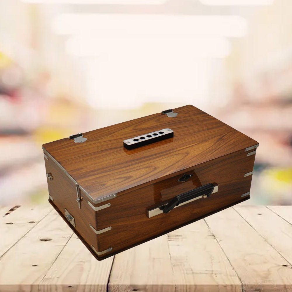 Binas Harmonium Traveler/Hand Pumped Portable/Folding 4 Stops- 5 Main & 4 Drones, 3½ Octaves, Teak Color, Coupler, Gig Bag, Bass-Male Reed - 440 Hz, Suitable for Yoga, Bhajan, Kirtan, etc